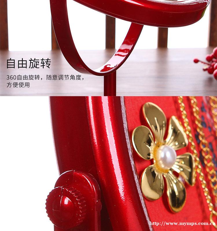 批发喜庆梳妆镜子婚镜新娘陪嫁婚庆用品结婚红色中式台式化妆镜