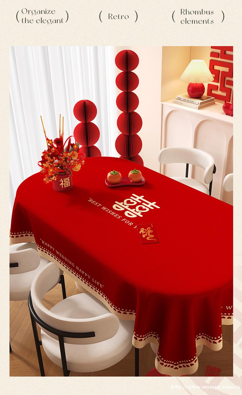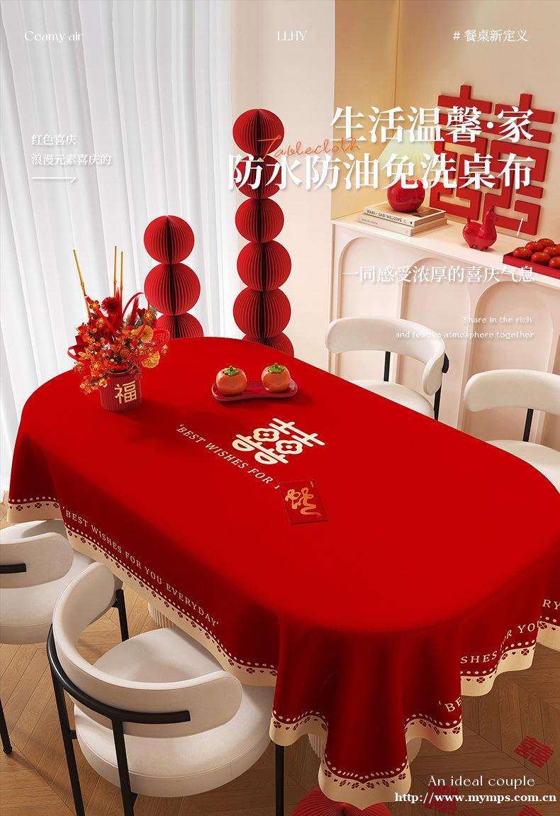 新款椭圆pvc结婚专用桌布防水防油免洗喜庆红色家用餐桌台布批发