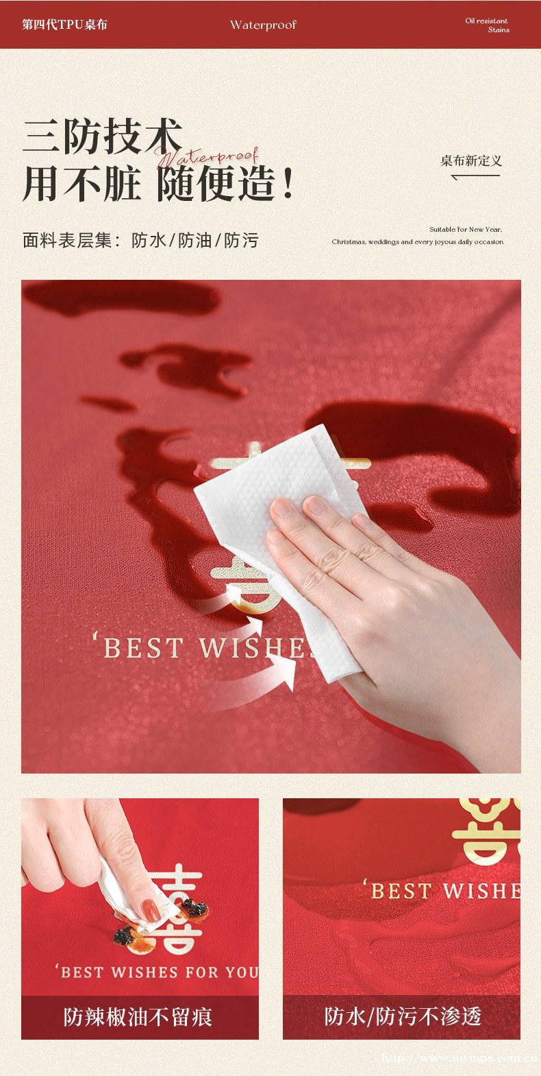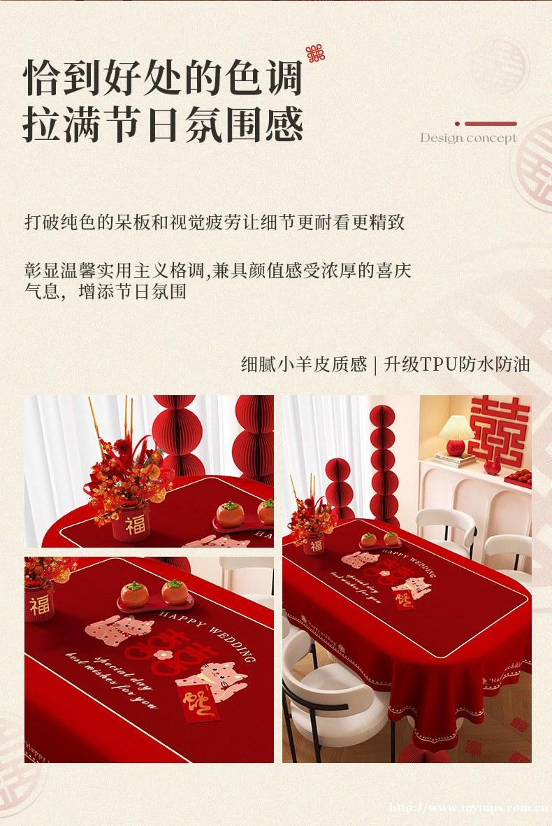新款椭圆pvc结婚专用桌布防水防油免洗喜庆红色家