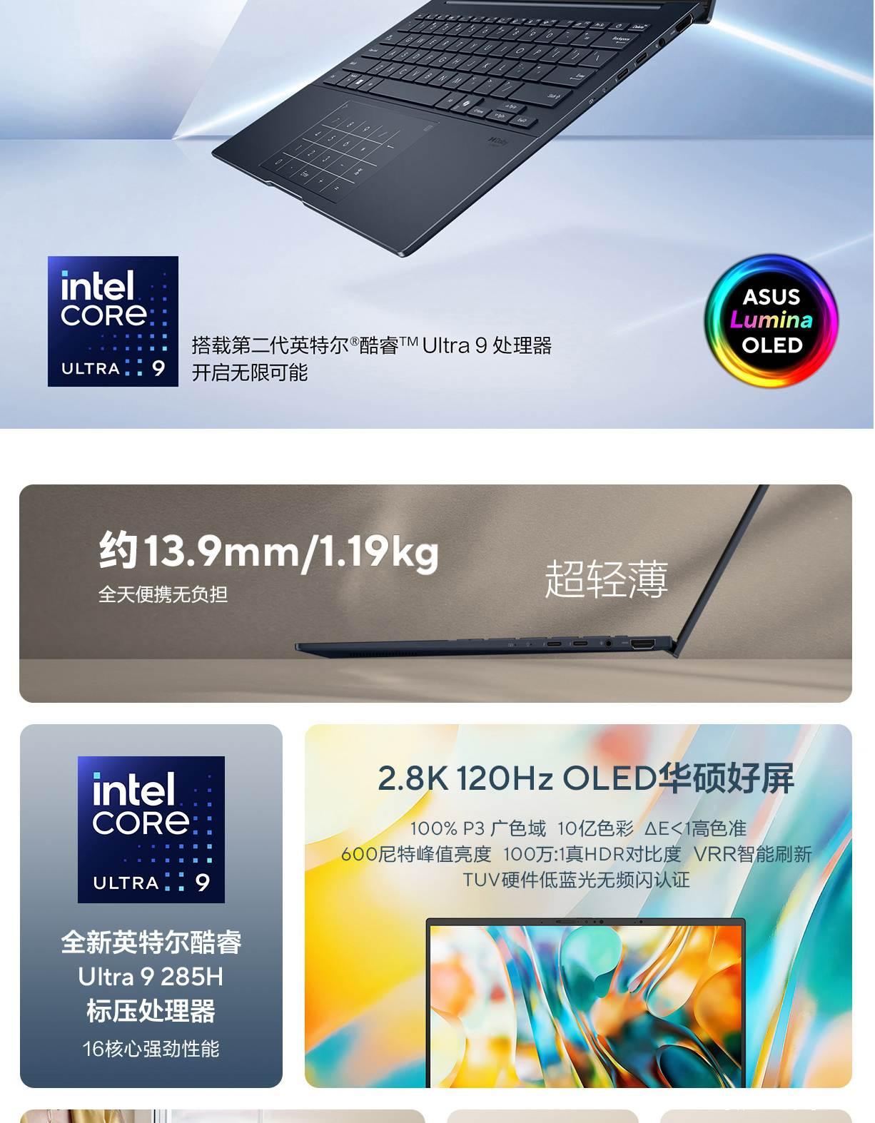 灵耀14 2025 全新酷睿 2.8K 120Hz OLED屏高颜值AI